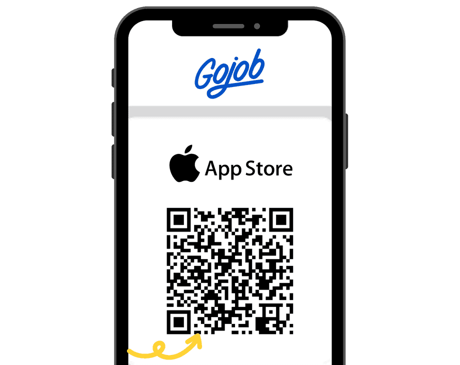 Scannez le QR code ou rendez-vous sur l'App Store en cliquant ici pour télécharger l'application Gojob et simplifier votre recherche d'emploi.